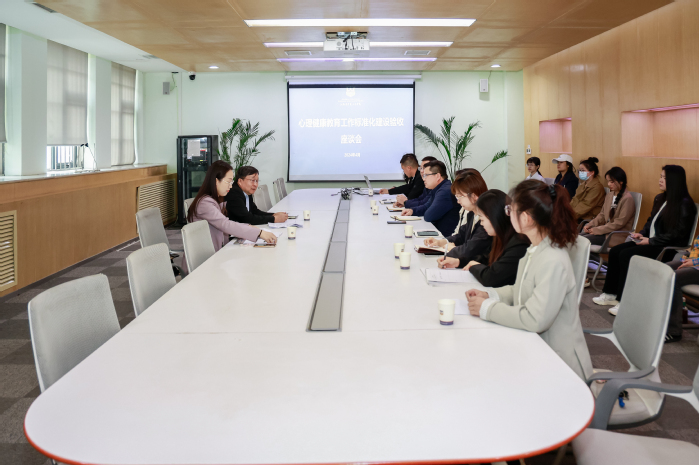 随后,王莉从体制机制建设、师资队伍建设、教学体系建设、活动体系建设、咨询服务体系建设、危机预防与干预体系建设、条件保障和工作成效等八个方面对我校心理健康教育工作标准化建设情况进行了详细的汇报,并介绍了我校心理健康教育工作的特色亮点及下一步展望。