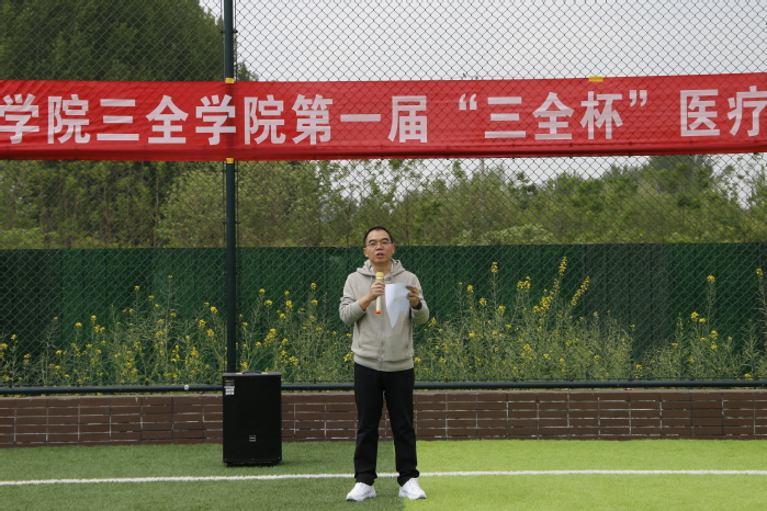 为丰富教职工业余文化生活、加强各医疗单位协作交流、提高职工身体素质,4月13日,由校工会主办、职工足球俱乐部承办的第一届“三全杯”医疗系统职工足球邀请赛在我校平原新区足球场举行。校党委副书记杨国平、副院长白国强、工会副主席韩丽出席开幕式。开幕式由工会办公室主任丁寅主持。