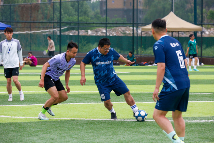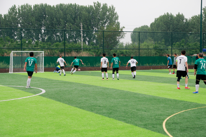 此次赛事共有来自新乡医学院第一附属医院、新乡医学院第三附属医院、新乡市中心医院、新乡市第一人民医院、新乡市第二人民医院、中国人民解放军陆军第83集团军医院和我校教职工代表队组成的7支职工队伍共聚绿茵赛场。各队队员组成十分“硬核”,有50多岁的“大叔”,也有00后的“小鲜肉”,队员年龄差将近20岁,但赛事的激烈程度丝毫不减,传球、过人都毫不示弱,让人尖叫连连,充分展现了勇者不惧、奋勇拼搏的竞技体育精神。细腻的脚法、默契的配合、缜密的队形部署使得场上形势越来越胶着,时时掀起高潮,很快进入白热化阶段。