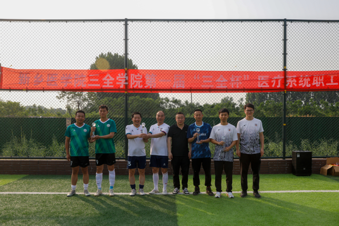 此次赛事采用单循环积分制,积分多者名次列前,经过2周21场比赛的激烈角逐,最终由新乡医学院第一附属医院夺得桂冠,我校教职工代表队荣获亚军,中国人民解放军陆军第83集团军医院获得季军,新乡市第一人民医院获得“优秀组织奖”。新乡市第二人民医院的胡鹏举老师以精准的预判、灵活的身躯严防死守,获得最佳门将奖;新乡医学院第一附属医院郑斌老师以个人进球10颗的战绩获得最佳射手奖;我校教职工秦阳老师以精湛的球技获得最佳球员奖;新乡市第一人民医院白云峰老师获得最佳防守队员奖。至此,第一届“三全杯”医疗系统职工足球邀请赛圆满落下帷幕。