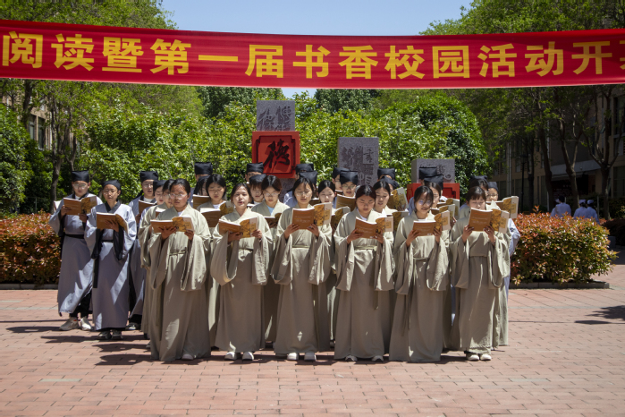 为深入贯彻落实习近平总书记关于在校园中推广书香文化、建设学习型社会系列讲话精神,推进我校读书工程和文化传承工作,形成“多读书、读好书、好读书”的良好风气,营造学校浓厚的书香氛围。4月23日上午,崇德书院在书院园区开展“书香校园”读书活动,副院长顾欢受邀出席活动,崇德书院300余名师生参加了本次活动。活动由崇德书院党总支副书记杨翠苹主持。