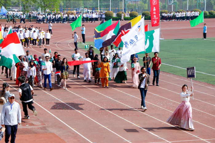 少年鲜衣怒马,不负盛世中华。伴随着响亮的欢呼与呐喊,国旗方阵、彩旗方阵,裁判员代表队入场,各书院方阵、国际学生以及教职工代表队依次登场他们步伐整齐、精神抖擞、斗志昂扬,高亢嘹亮的口号充分展现了朝气蓬勃的青春活力和昂扬向上的精神风貌。