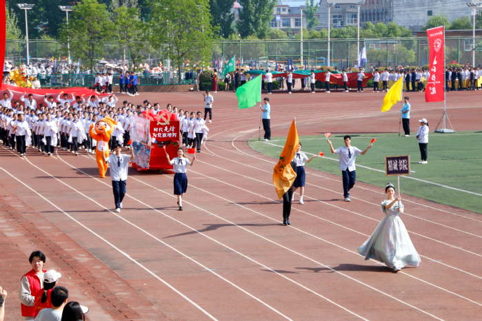 跃动青春,勇于拼搏;放飞梦想,谱写华章。愿各位运动员能以文明为岸,将精神作桨,在赛场上赛出风格赛出水平,留下青春中浓墨重彩的一笔。