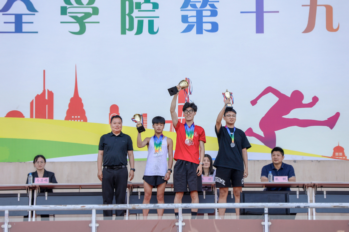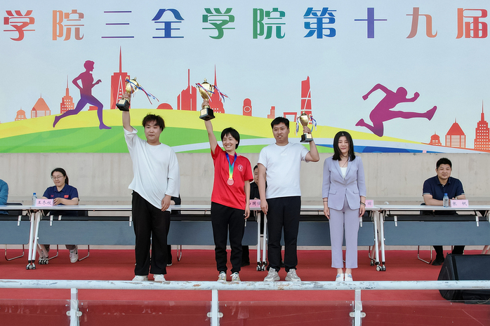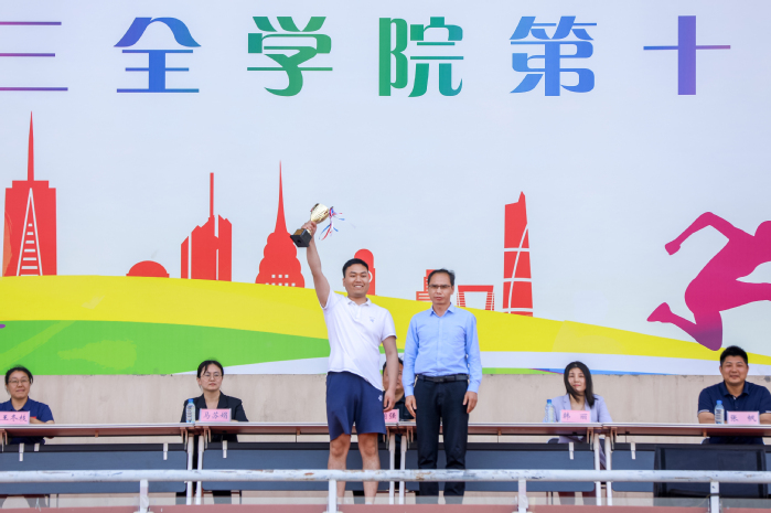 体育部副主任王冬枝宣布比赛成绩。智行书院代表队、羲和书院代表队、精诚书院代表队分获学生组男子团体总分前三名;羲和书院代表队、智行书院代表队、德馨书院代表队分获学生组女子团体总分前三名;羲和书院代表队、智行书院代表队、仁智书院代表队分获学生组男女团体总分前三名;羲和书院工会代表队、机关第二工会代表队、精诚书院工会代表队分获职工组团体总分前三名。智行书院代表队获第十九届运动会体育道德风尚奖。出席领导为获奖团体颁奖。