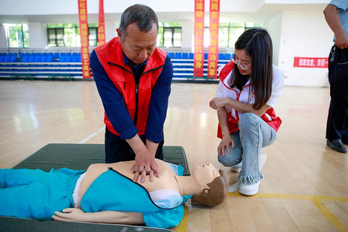 弘扬红十字精神,传播红十字文化。为切实提高新乡市中小学教师应急救护能力,改善技能培训缺乏的现状,提升应急救护知识的掌握,提高学校对于急救知识的普及加强校园的安全建设515日,德馨书院联合校团委前往平原新区第一初级中学开展“救知道”青少年赋能课堂志愿服务项目,以应急救护知识宣传、技能培训和志愿服务活动为抓手,面向平原新区第一初级中学100名教师进行急救实践技能的培训。