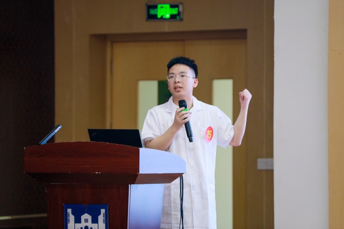 本次竞赛分初赛和决赛两个阶段。初赛由各教学单位自行开展,在各单位的精心筹备下,经选手报名、基地初选、集中培训等严格流程,历时24天,最终16名学生脱颖而出,入围决赛。竞赛内容包括病历书写和病历汇报。病历书写为医学生在科室带教老师的指导下按照标准进行规范的入院记录书写。病历汇报为参赛选手以PPT形式将书写的病历进行展示,要求思路清晰、观点明确、理论联系实际。比赛开始后,参赛选手依次完成了病历汇报,评委老师进行现场点评指导和打分。最后,评委代表进行总结发言。