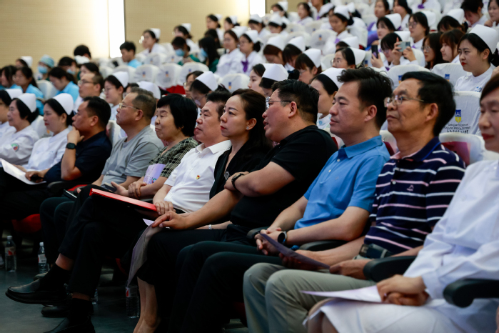 戴付敏发表寄语。以自己的亲身经历为引,分享了个人专业发展之路她表示,面对未来人口老龄化以及AI技术发展的双重挑战时,同学们必须坚守护理的初心与使命。首先要持续学习,不断更新自己的知识库,紧跟医学发展的最新步伐;其次,除了专业技能,更要注重培养人文关怀能力,患者提供优质护理服务;最后,鼓励同学们要勇于创新,多学科交叉,敢于在实践中尝试新方法,推动护理工作不断进步。
