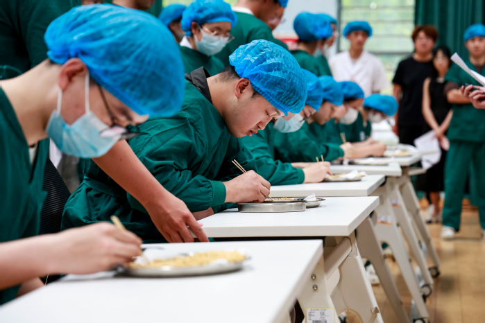 参赛队员冯紫艳开心的说:剥生鸡蛋讲究技巧,首先先敲个缝,掌握好力度后,一点点往下剥。从一开始一剥凤凰衣就破,到最后十几分钟几乎可以剥一个完整的生鸡蛋,满满的成就感。”参赛队员于海激动地说:“今年的比赛特别有趣,对锻炼手部的精细动作特别有帮助,接到比赛通知后,我和另外两个队员就开启了苦练模式,每天除了上课、吃饭、睡觉外,几乎所有时间都用来夹豆子了,这次比赛,我们在限时三分钟的时间内接力夹了183个黄豆,人生的每一步都不白走,我们立志成为一名合格的德才兼备的医学后备军,为祖国的医药卫生事业发展贡献我们的光和热。
