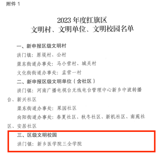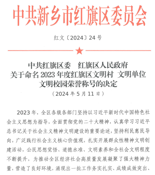 近日,我校成功获评2023年度新乡市红旗区区级文明校园。我校长期以来坚持立德树人根本任务,深化教育改革,提升办学水平,加强精神文明建设,多项工作取得显著成效,获得社会各界广泛认可。