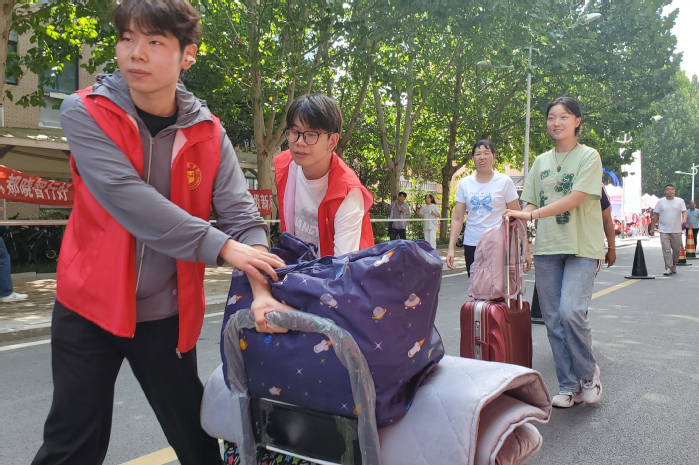 迎新期间,智行书院在车站、书院门口、报到现场设立“党员先锋岗”,学生党员志愿者忙着帮新生搬行李、指路线,热情身影成了迎新现场的亮眼风景。不少新生受此感染加入服务,在实践中体悟志愿精神,更读懂了党员的初心与担当。2025级新生李晴同学说,“党员学长学姐全程帮我办理报到,还耐心解答疑问,让我特别暖心,也让我对‘党员’这个身份有了更具体的认识。”此外,书院组织新生参观VR党建新时代党员活动室、观看《志愿军》《建党伟业》等红色电影,通过多种形式拓宽教育途径,帮助学子筑牢思想根基,激发爱国热情,增强理想信念。