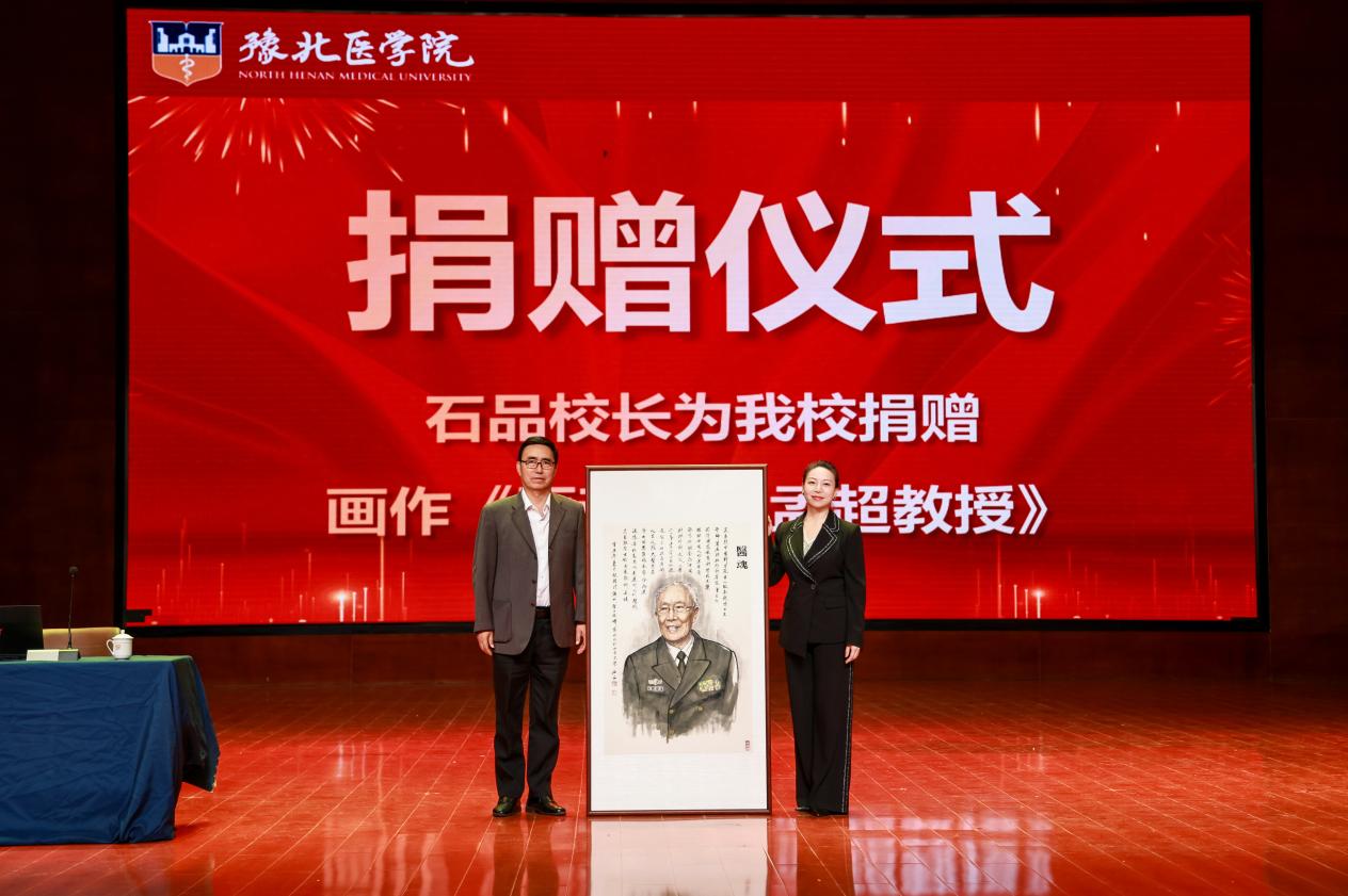 活动伊始,艺术捐赠仪式成为全场焦点。石品将其精心创作的画作《医魂——吴孟超教授》捐赠予我校。李琼代表学校接受捐赠,并高度评价道:“此幅作品描绘的人物形象不仅形神兼备,更凝聚着对“中国肝胆外科之父”吴孟超院士崇高医德和伟大精神的深切缅怀与敬仰,是“正能量”美术作品的生动典范。这份厚礼,饱含着石品校长对我校医学教育事业的大力支持和对师生的深情厚谊。