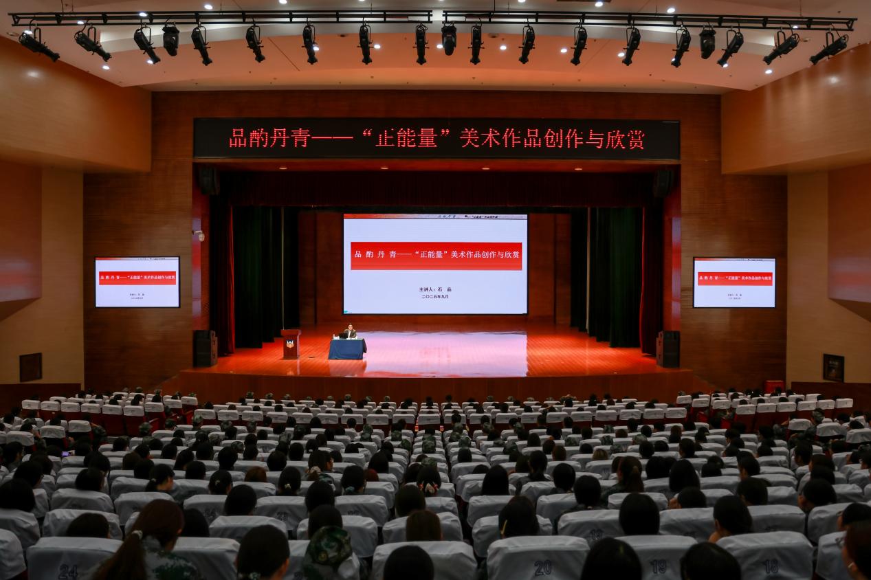 讲座尾声,石品以饱含期许的话勉励新生:“美术源于生活,又高于生活,更在于美化生活——热爱美术吧,美术不仅能丰富我们的生活,更能在艺术之美的浸润中,让我们深刻感受“正能量”作品所传递的向真、向善、向美的力量,从而拥有更明亮、更自信、更精彩的人生。”