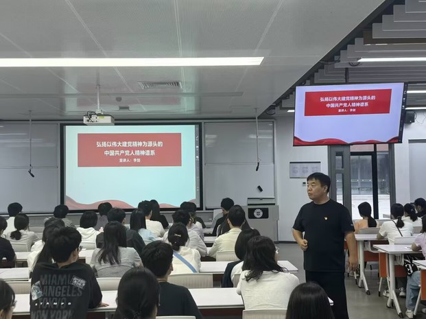 “聆听一堂启蒙报告”唤醒初心,为新生提供了系统的党建理论指引。9月10日,马克思主义学院李剑老师以《中国共产党精神谱系》做专题授课,深入浅出地解读了中国共产党人的精神谱系,讲述党的百年历史、红色故事阐述了“中国共产党为什么能”的深刻道理,鼓励同学们树立远大理想,争做担当民族复兴大任的时代新人。