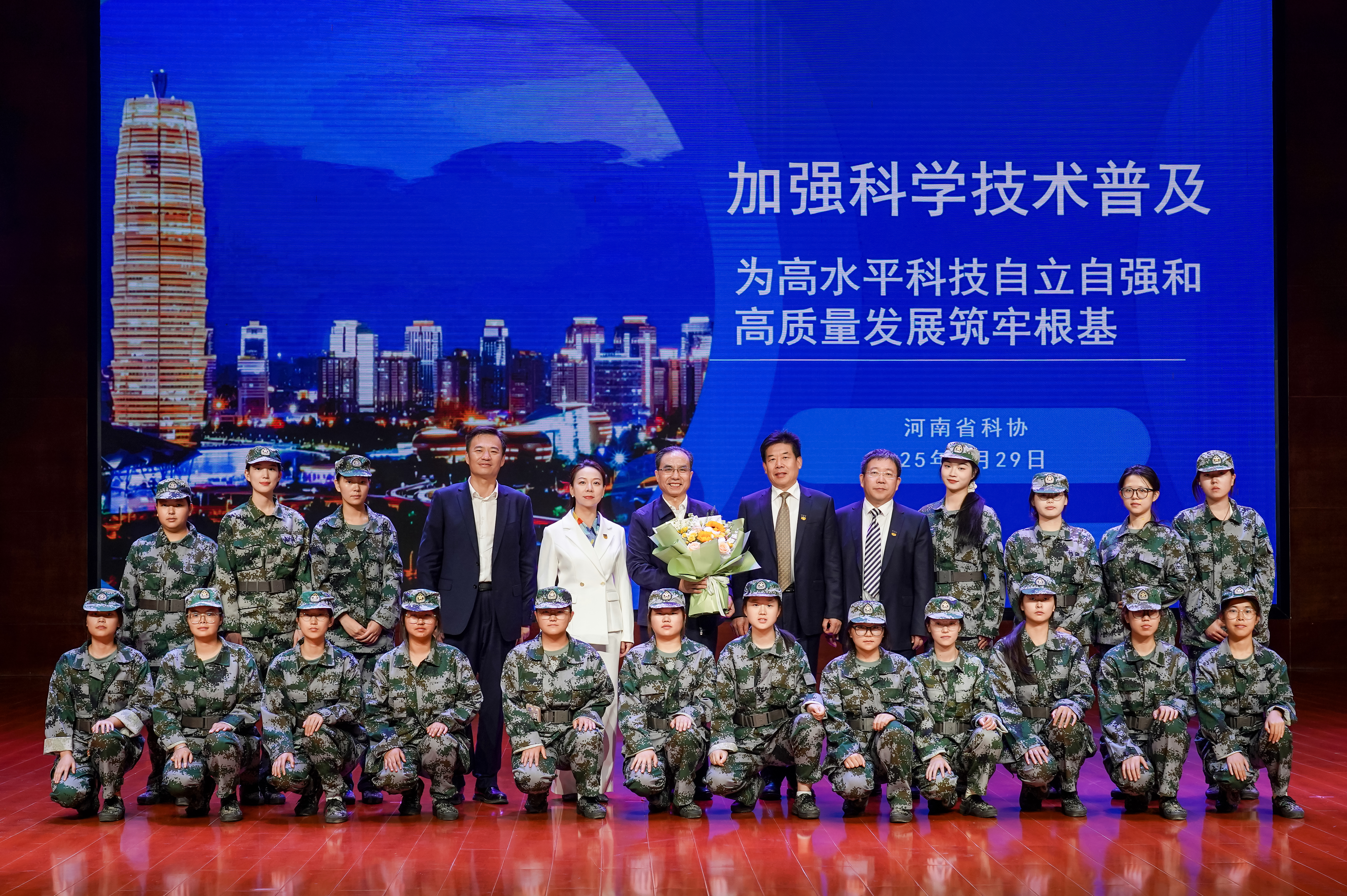 9月29日上午,我校新生入学教育“科普第一课”在闻德礼堂开讲。河南省科学技术协会党组书记尹洪斌应邀作题为“加强科学普及,为高水平科技自立自强和高质量发展筑牢根基”的专题报告。校党委书记李庚、校长李琼、常务副校长秦国亮、副校长马波出席,相关部门负责人与新生代表共同聆听,报告会由李琼校长主持。