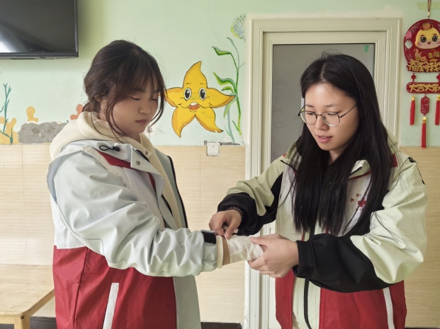 上午,志愿者们抵达福利院后,迅速投入环境清洁工作。他们分组对儿童活动室、康复训练室及广场区域进行全面清扫,整理物品、擦拭设施,不放过任何一个卫生死角。经过一小时的忙碌,院区环境焕然一新,为孩子们营造出更加整洁、安全的生活空间。清洁工作结束后,志愿者们结合福利院实际需求,为工作人员开展了一场生动的应急救护培训。通过模拟心肺复苏、外伤包扎等场景,志愿者们系统讲解了急救流程与操作要点,并手把手指导工作人员进行实操练习。福利院李老师全程参与培训后感慨道:“这些知识非常实用,不仅能帮助我们更好地应对突发情况,也让我们对孩子的安全保障更有信心了。”