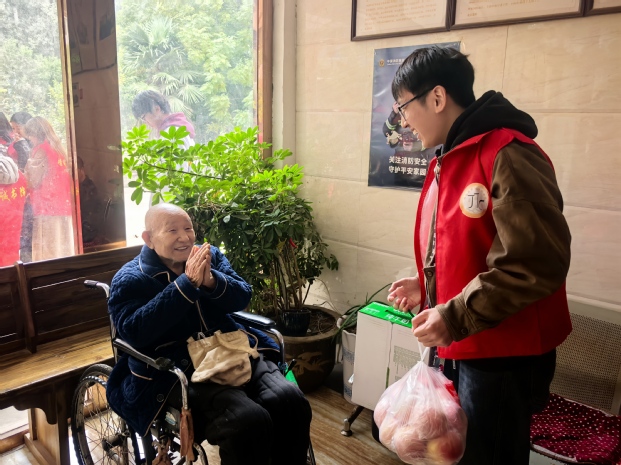 在敬老院的活动室与老人房间里,志愿者们俯下身子,为老人按摩肩背、手臂,动作轻柔舒缓。同时,他们还与老人亲切聊天,询问老人的生活起居、身体状况,倾听老人讲述过去的故事。对于无法下床的老人,志愿者们则坐在床边,为老人读报纸、唱老歌,送上重阳节的美好祝福,让老人们在节日里感受到浓浓的关怀。