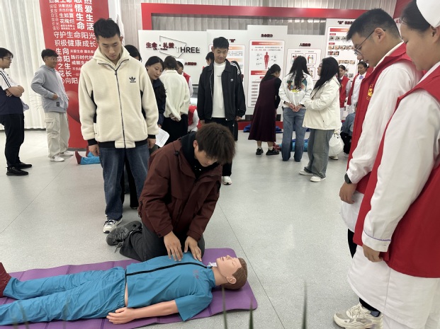 10月12日,志愿者于红十字馆组织开展心肺复苏专项培训,培训采用“理论精讲+实操示范”模式,讲解心肺复苏原理、流程及误区,重点演示胸外按压、气道开放等关键环节。实操环节,网格长分组演练,在志愿者一对一指导下,借人体模型反复练习按压深度、频率与呼吸配合。网格长李文感慨:“以前总觉得心肺复苏离自己很远,今天亲手操作才知道,正确的手法能在关键时刻挽救生命。”10月14日,书院在弘学楼举办“生命接力,‘救’在身边”心肺复苏比赛,参赛者以“1001、1002、1003……”的节奏规范完成按压与人工呼吸。“以赛促学”让急救知识从“纸上谈兵”变为实用技能,推动“急救人人可为”理念深入人心。