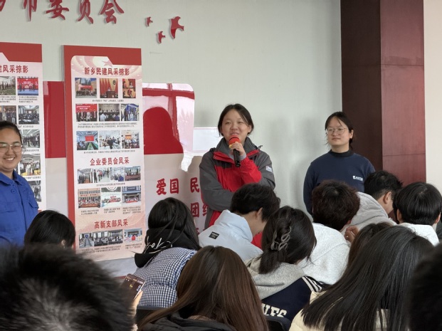 参观结束后,师生移步至办公楼五楼会议室,进入“深度对话”环节。邦尼国际部外贸业务员李帅欣以详实的数据介绍了公司的全球业务布局,指出企业已构建“研发—制造—销售”一体化体系,产品远销40多个国家与地区,全面符合ISO 13485、CE、FDA等国际医疗质量标准,在国际康复器械领域彰显“中国力量”。