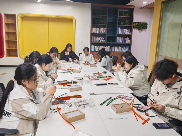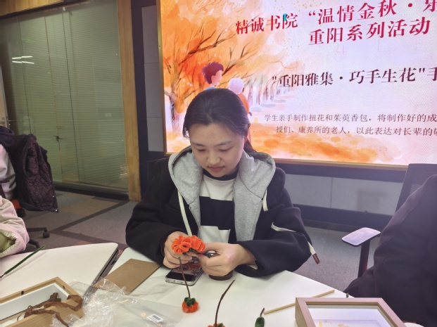 10月27日,精诚书院党委在众创空间继续开展“重阳雅集,巧手生花”手工工作坊活动。