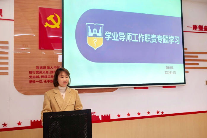 马苏娟在致辞中向来自护理学院、医学检验学院、马克思主义学院、体育部的二十位新任学业导师表示衷心感谢。她强调,学业导师制是推动“双院制”育人模式改革、满足学生个性化发展需求的关键环节。学业导师不仅是学生学术道路上的引路人,更是其成长过程中的守护者。希望全体导师以渊博的学术知识、严谨的治学态度和丰富的实践经验引领学生成长。她同时勉励学生主动“走近”导师、真诚“走进”导师,珍惜宝贵的学习机会,努力成长为德才兼备的医学人才。
