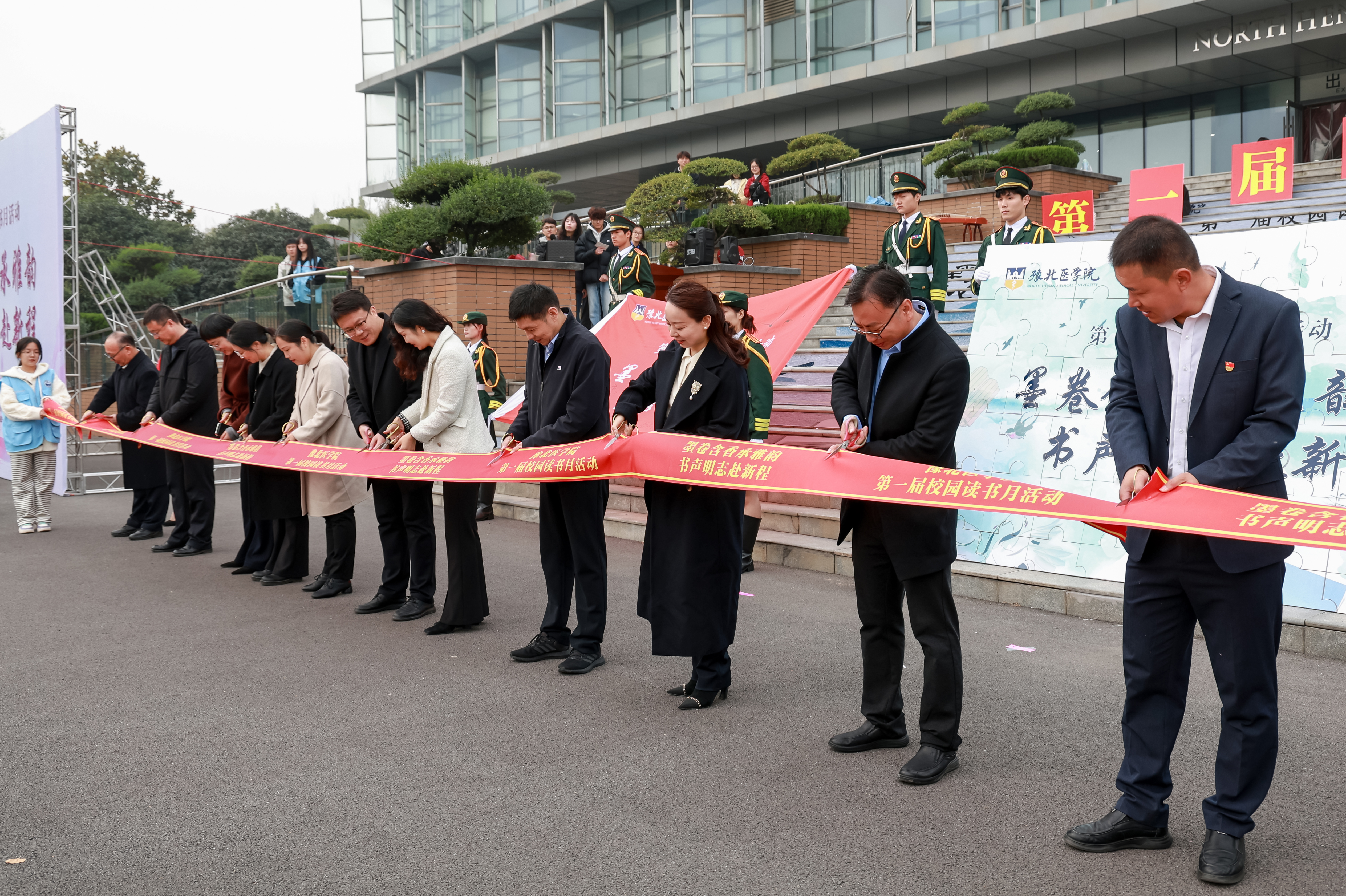 刘雪立宣布豫北医学院第一届校园读书月活动正式开幕,与会领导和嘉宾共同为读书月活动开幕剪彩。