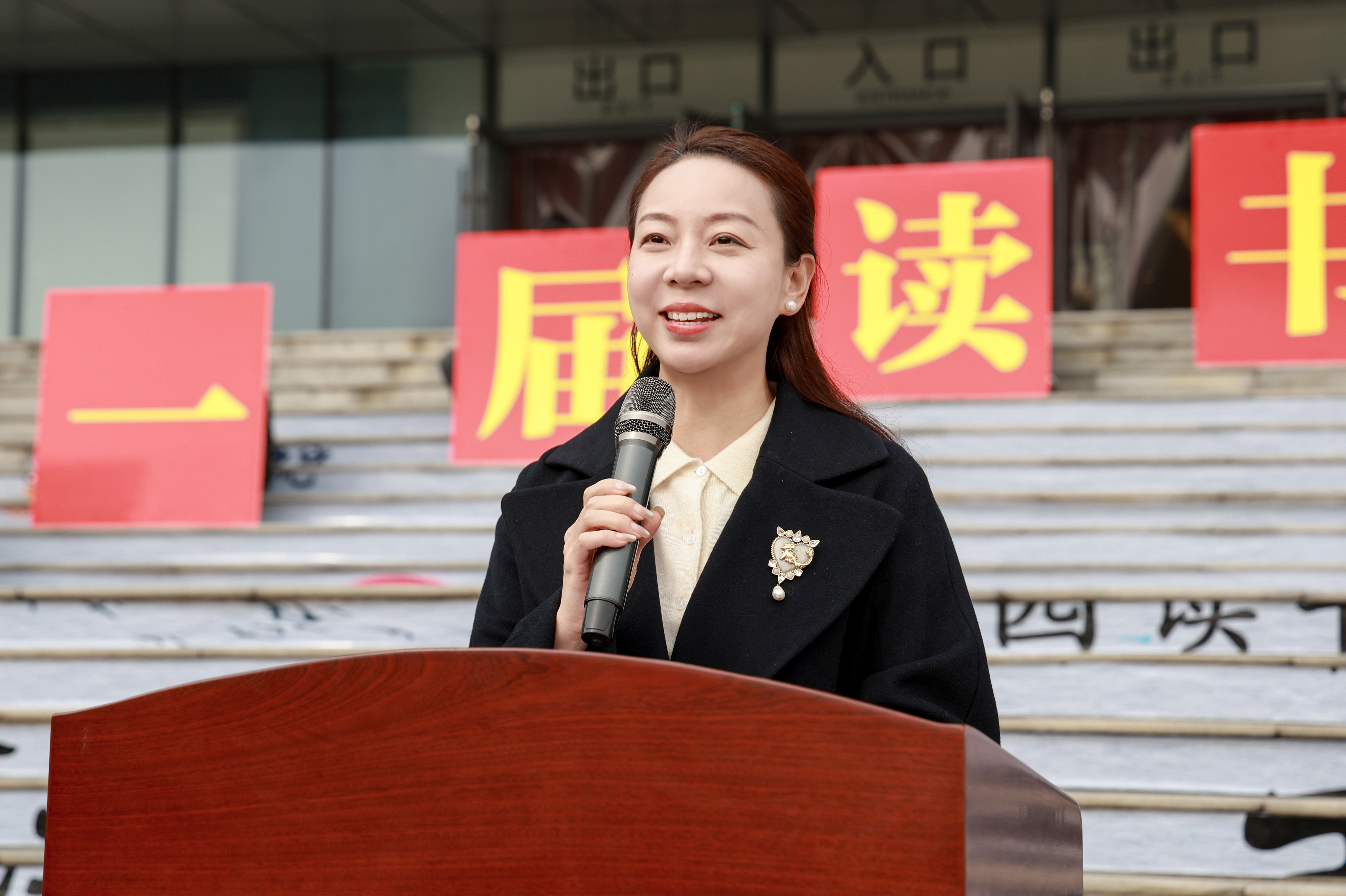 李琼致开幕辞。她指出,本届读书月主题墨卷含香承雅韵,书声明志赴新程”,既承载着历史沉淀,也寄托着未来期许,希望全体师生踊跃参加,通过阅读赓续文脉、坚定文化自信,凝聚迈向新征程的磅礴力量。同时,她提出三点希望:一是希望图书馆坚持守正创新,打造文化育人新高地,坚守“立德树人”使命,努力建设滋养心灵、涵养学术的精神家园,为学校的高质量发展提供坚实的文化支撑;二是希望同学们以书为友,涵养终身阅读品格,让阅读成为习惯,既要精研专业,也要博览群书,成长为既具专业深度又有人文温度的新时代栋梁;三是希望广大师生以书为媒,携手营造“爱读书、读好书、善读书”的校园文化生态,为学校高质量发展注入持久的文化动力。