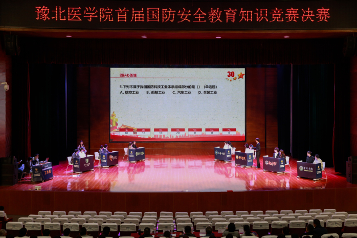 为提升学生国防意识,培养学生爱国情怀、责任担当和综合素质,进一步加强我校学生国防安全意识,11月5日,我校首届国防安全教育知识竞赛决赛在闻德礼堂隆重举行。本次活动由我校学生处主办,精诚书院承办。校党委书记李庚出席活动并发表讲话。活动邀请了校内6位专家担任评委,各书院党委书记、参赛团队以及800余名师生参与。