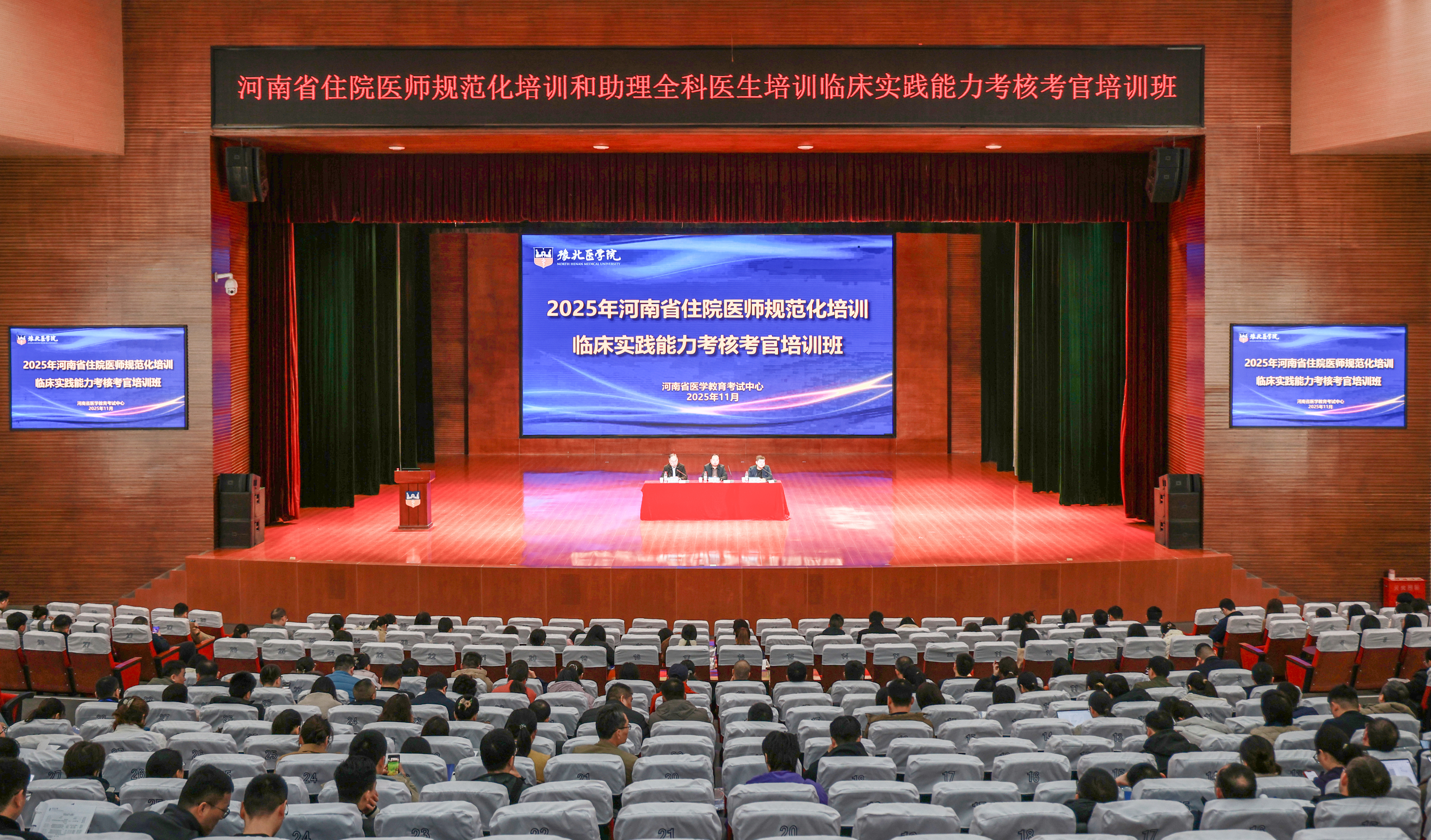 为进一步规范我省住院医师规范化培训和助理全科医生培训临床实践能力结业考核、年度考核,助力实践能力考核考官全面理解掌握考核标准,强化考官队伍建设,提高临床实践考核能力,由河南省卫生健康委员会指导,河南省医学教育考试中心承办的2025年河南省住院医师规范化培训和助理全科医生培训临床实践能力结业考核考官培训班于11月8日至9日和15日至16日在我校平原校区成功举办。我校副校长白国强、河南省卫生健康委员会科教处三级主任科员王晨,来自全省的624名学员参加培训。
