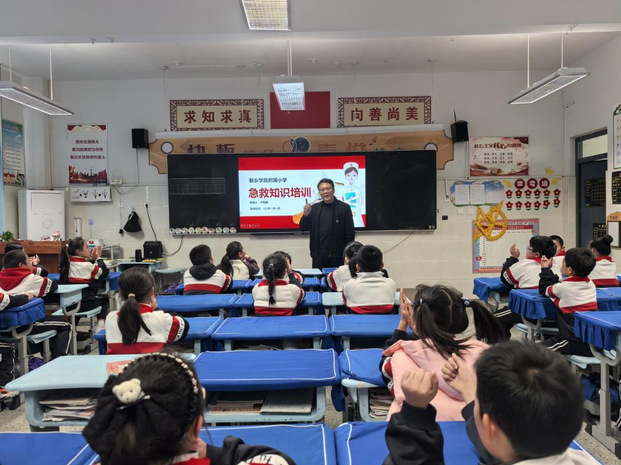 为深入推动安全教育与生命教育融合发展,充分发挥党员先锋模范作用,2025年11月14日,德馨书院党委书记卢明臣带领本院“救知道”青少年赋能课堂党员志愿者服务队,走进新乡学院附属小学三年级(5)班,开展了一场专业生动、寓教于乐的急救知识培训活动,以实践行动诠释高校服务社会、党员服务基层的责任担当。