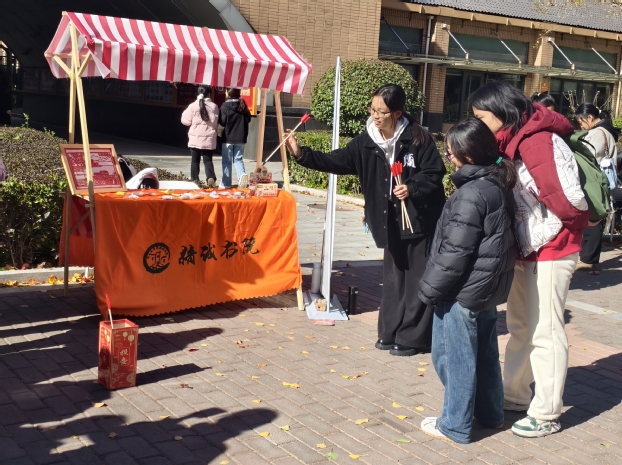 文艺汇演进行之际,摊位活动亦同步展开。活动以四大特色展区为载体,集结了经典影视社、Angus协会、自强社、主持社等社团力量,划分四大主题摊位区域,分别为“我的家乡宝藏”“非遗新创”“文化任务卡”和“摊位代言人”。通过沉浸式文化体验,为师生呈现了一场集民俗展示、非遗实践及文化交流于一体的文化盛宴。