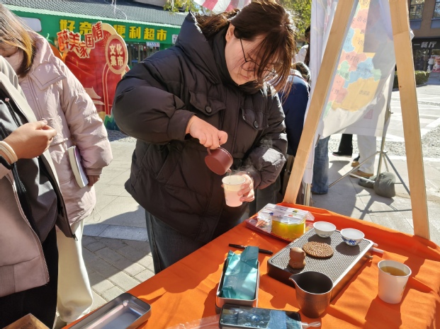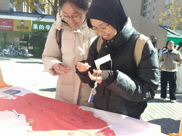“我的家乡宝藏”摊位上,同学们现场体验了内黄烧灌肠、信阳毛尖、云南普洱、红茶等地方特色饮食,结合河南省地图签名助力环节,唤醒参与者对乡土文化的认同与乡愁记忆。