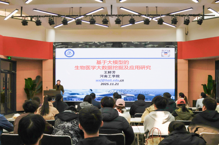 11月21日上午,河南工学院王鲜芳教授受邀做客我校“科技活动月”大讲堂,作了题为“基于大模型的生物医学数据挖掘及应用研究”的专题报告,有关院部教师、智行书院学生等聆听报告,讲座由智能医学工程学院院长韩玉民主持。