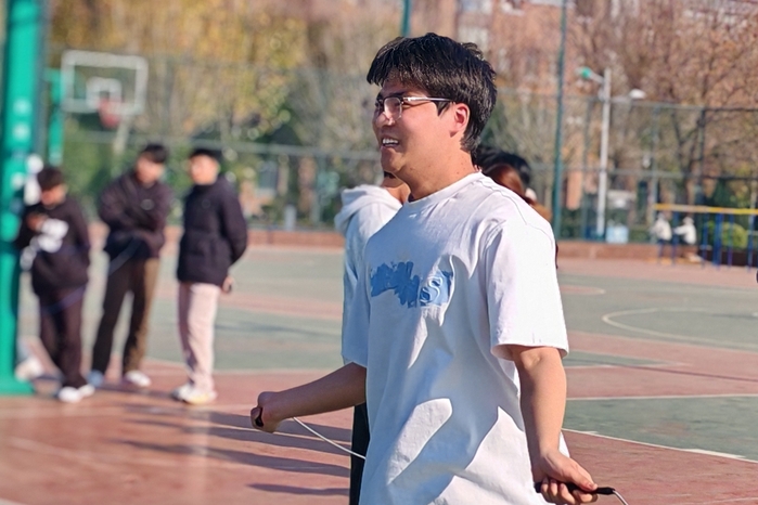 20日中午,“趣味跳绳接力赛”率先开赛。赛场之上,加油声、欢笑声交织回荡;参赛宿舍成员配合默契,摇绳与起跳节奏精准同步,尽显团队协作的默契与力量。一根跳绳串联起团结与友爱,也让奋斗拼搏的青春风采尽情绽放。