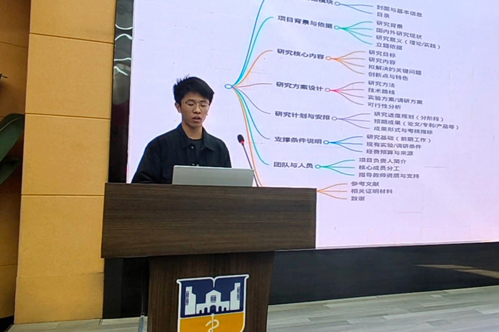 在优秀科研案例分享环节,三位学生代表带来了精彩纷呈的展示。吴泊乐聚焦科研竞赛实战经验,从申报书格式规范、PPT制作技巧,到数据真实性保障、汇报用词规范等细节入手,分享了项目展示的关键要点与可行性分析方法。马真行带来脑机绘图项目分享,该项目依托ATCnet模型,由智能医学工程、康复治疗学等跨专业团队协作完成,已在“挑战杯”竞赛中斩获一等奖、“互联网+”大赛中获得三等奖,他详细介绍了项目背景、核心技术及不同赛事的备赛侧重点。马梦南的AI助力外周血白细胞检测项目同样引人注目,项目基于8566张三甲医院白细胞图像构建高质量数据集,集成三大技术优势优化检测流程,不仅创新点突出,还已经与多家医院及医疗器械公司达成合作,应用场景覆盖教学、基层医疗、三甲医院应急等多个领域。