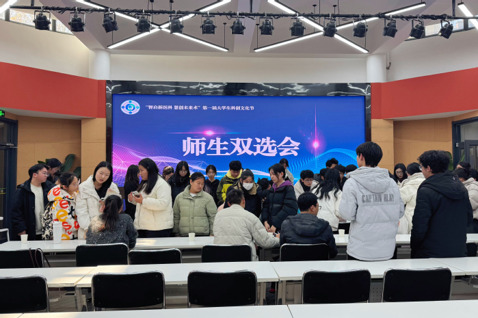 为搭建高效科研交流桥梁,推动师生科研合作精准落地,12月4日中午,“智启新医科 慧创未来术”第一届大学生科创文化节师生双选会在智行书院多功能报告厅圆满举办。科研处处长靳瑞霞、智能医学工程学院副院长丁寅、智行书院党总支副书记孙媛慧,各院系教师代表、书院辅导员及全体参选学子齐聚一堂,共赴科创之约,共探科研新途。