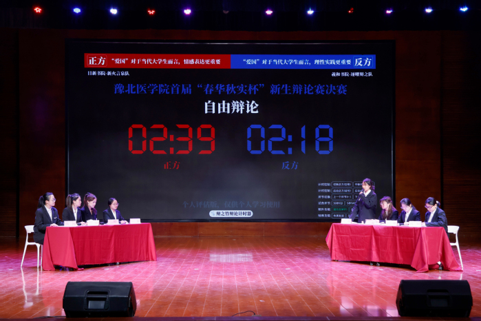 当“清澈的爱,只为中国”遇上“理性报国,实干兴邦”,当代青年的爱国答卷该如何书写?12月4日豫北医学院首届“春华秋实杯”新生辩论赛给出了思辨答案。大赛邀请崇德书院党委副书记窦倩、马克思主义基本原理教研室主任王桂琴、图书馆读者服务部主任陈燕担任评委。各书院党委书记出席活动,各书院学生代表500余名现场观看比赛。