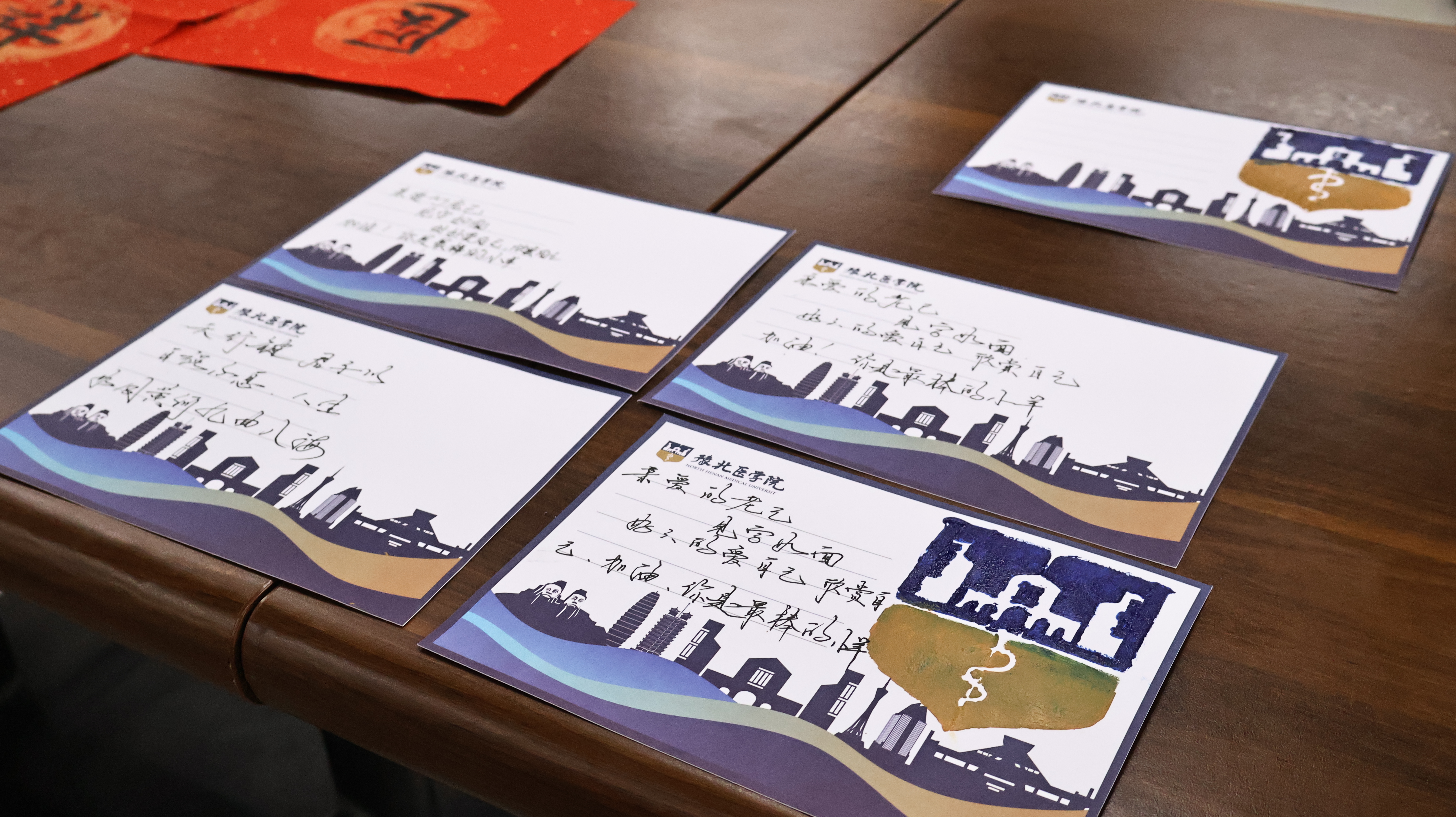 手工漆扇DIY区里,大家手执素扇,蘸取漆料,在扇面上勾勒出一幅幅独具匠心的图案。或绘山水之秀,或描花鸟之趣,一把把素扇在巧手下变成了精美的艺术品。福字书写区前,墨香阵阵,师生们挥毫泼墨,写下一幅幅饱含祝福的“福”字,将对新年的美好期许融入笔端。拓印明信片制作区更是人气满满,大家用工具蘸取颜料,在明信片上轻轻拓印,一张张承载着传统文化韵味的明信片跃然纸上,成为独属于这个冬至的珍贵纪念。