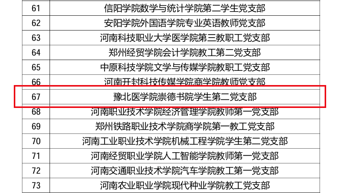 近日,中共河南省委教育工委公布了第三批全省高校党建工作强基引领“三级联创”系列活动评选结果。我校精诚书院党委(原豫北医学院精诚书院党总支)入选“全省高校党建工作标杆院系”培育创建单位,崇德书院学生第二党支部入选“全省高校党建工作样板支部” 培育创建单位。这是学校首次在“三级联创”中获评党建工作标杆院系,标志着学校党建示范创建和质量创优工作取得新突破。