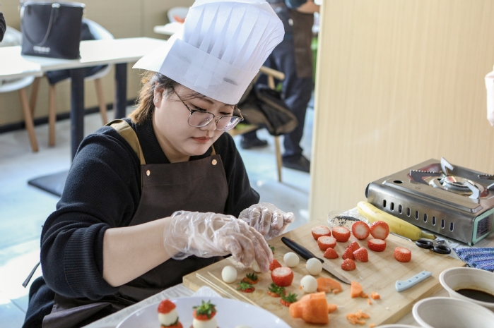 赛场之外,欢乐氛围同样热烈。大赛精心设置了DIY糖葫芦、棉花糖等趣味体验区,观赛师生亲手参与美食创作,酸甜的糖葫芦、蓬松的棉花糖让现场欢声笑语不断。互动抽奖环节更是将氛围推向高潮,在选手潜心创作的间隙,幸运大奖轮番送出,惊喜与期待交织,让整个赛场充满了温暖与活力。经过激烈角逐,评委组评审打分,决出学生组、教职工组与师生协同组一二三等及优秀奖,领导嘉宾分别为获奖单位颁奖并合影留念,为这精彩纷呈的美食盛宴画上圆满句号。