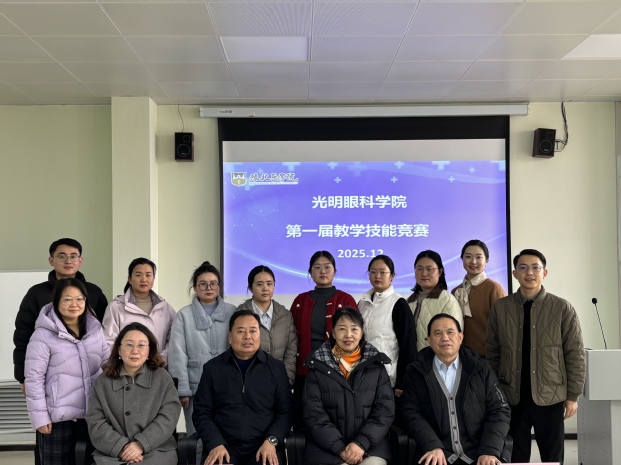 为深入推进教育教学改革,锤炼教师教学技能,推动教学创新与质量提升,2025年12月26日,光明眼科学院成功举办第一届教学技能竞赛。我校副校长白国强莅临指导并为竞赛致辞,基础医学院院长杨胜教授、马克思主义学院石霞副教授、光明眼科学院院长刘向玲教授担任评委光明眼科学院全体教师参加。