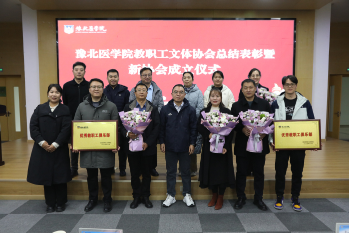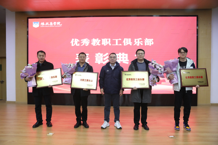 王真真宣读《关于表彰2024年度优秀教职工俱乐部及同意成立相关教职工俱乐部的决定》,摄影俱乐部、羽毛球俱乐部、网球俱乐部、足球俱乐部获评“2024年度豫北医学院优秀教职工俱乐部”荣誉称号,杨国平为获奖俱乐部代表颁发奖牌。摄影俱乐部会长孙浩作为优秀俱乐部代表登台发言,分享建设经验、交流工作感悟,为各俱乐部高质量发展传经送宝。