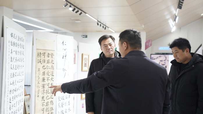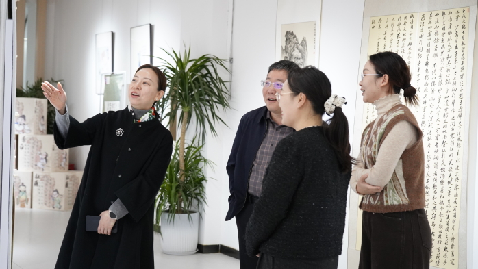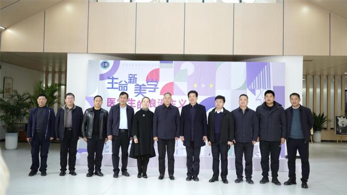 展览期间平原示范区党工委副书记丁伟斌我校党委书记李庚、校长李琼、常务副长秦国亮、副长马波等领导莅临现场,与在场师生亲切交流。展览吸引了累计千余名师生踊跃参与,现场互动热烈、氛围浓厚,充分展现了美育与医学教育深度融合的生动实践与育人成效。