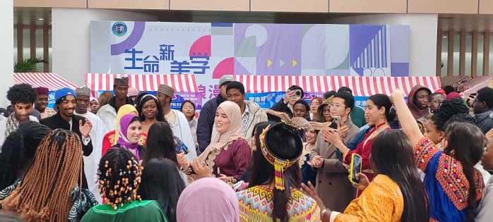 在美育成果展同期,由国际教育学院主办,大学生国际交流协会与仁智书院共同承办的国际文化交流节同步启幕。美育展特别融入“中外美育文化交流角”,为跨文化对话搭建了生动平台。通过各国代表性美学符号、艺术风格与手工艺品的并置展示,配合相应地域的音乐、影像与艺术导览,营造出沉浸式的文化感知场域。这一创新融合,不仅拓宽了学生的全球审美视野,也在互动体验中促进了对多元文明的深度理解与情感共鸣,生动诠释了“各美其美、美美与共”的文明交流理念。