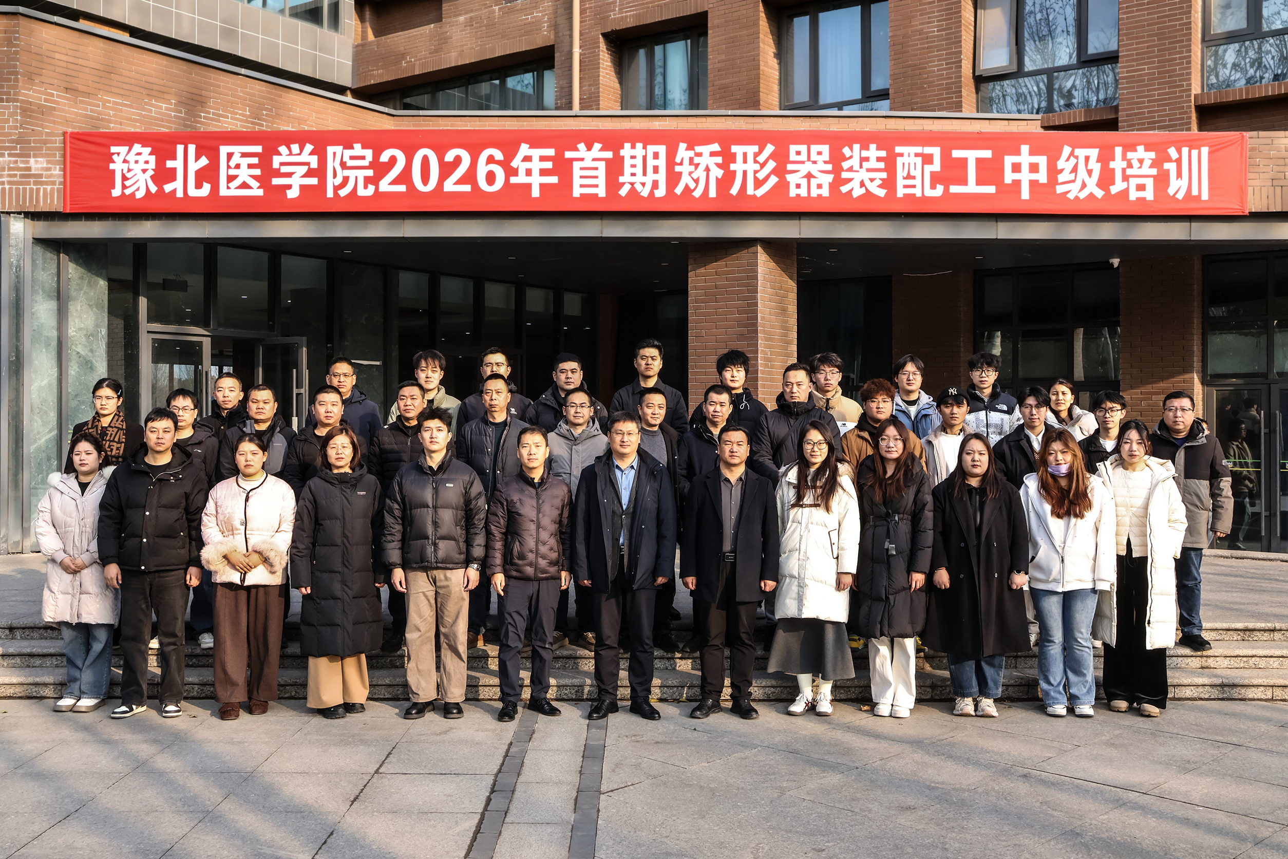 开班仪式最后,全体学员及工作人员在弘学楼门口合影留念。来自山东的学员卢先生表示:“早就听说豫北医学院在假肢矫形领域的专业实力,这次特意赶来学习,期待通过系统培训提升实操技能,更好地为患者服务。”