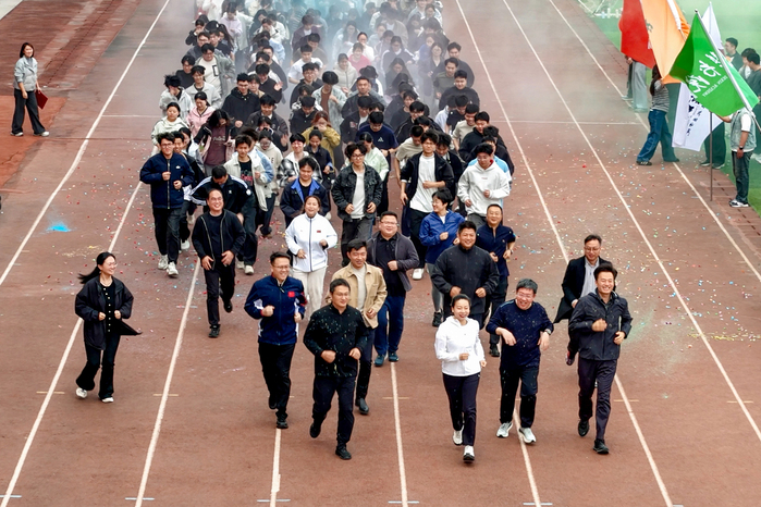 在全场师生的热切期待中,李琼高声宣布:“豫北医学院2026年春季健康第一跑活动开始!”随着发令声响起,校领导与在场师生一同迈开步伐,奔跑的队伍如一条跃动的长龙,在校园道路上绵延前行,成为春日校园里一道亮丽的风景线。