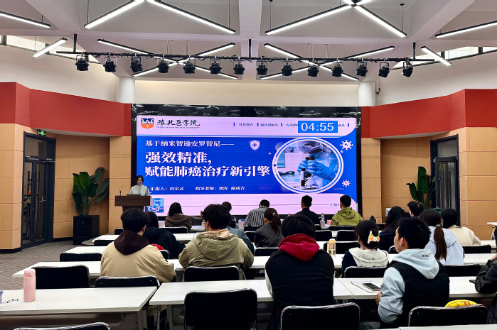 本次决赛分为自然科学组与社会科学组。答辩现场,各团队按抽签顺序依次进行展示,采用“5分钟项目陈述+2分钟评委问答”的形式。汇报人凭借扎实的理论功底、详实的实验数据与严谨的逻辑分析,围绕项目背景、技术路线、创新亮点及阶段成果等维度进行了全面阐述。参赛项目聚焦医学科技前沿,涵盖新型药物研发与靶向治疗、慢性疾病智能监测与辅助诊断等多个热点领域。面对评委精准而专业的提问,同学们沉着应对、对答如流。评审团秉持公平、公正、公开的原则,从项目创新性、可行性及现场答辩表现等多方面进行综合量化评分。