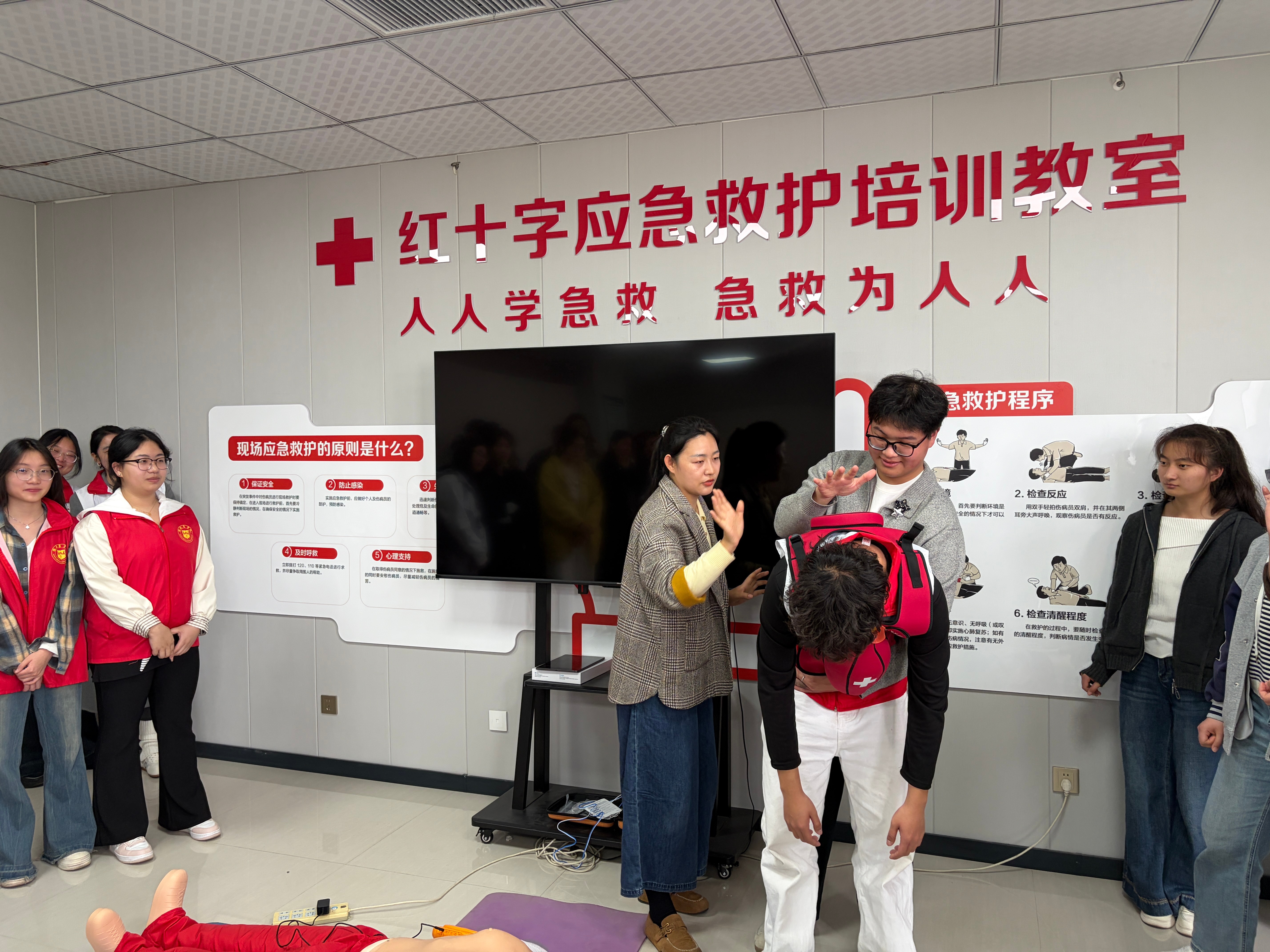 王娅如老师结合丰富的临床经验和真实急救案例,系统讲授了心肺复苏术与AED的联合使用、海姆立克急救法的核心要点,以及多场景下的自救互救技巧。培训注重拆解操作背后的医学原理,强化动作规范与教学要点,并针对成人、儿童、婴儿等不同人群,细致梳理急救手法的差异与适用场景,帮助志愿者在精通技能的基础上,准确把握教学重难点。