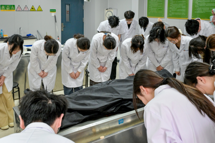 活动最后,基础医学院人体解剖学苗莹莹教授作总结寄语,鼓励学子们将本次活动的感悟转化为学习的动力,把敬畏生命的理念融入专业学习与日后的行医之路,兼顾医术精进与医德修养,始终牢记“敬佑生命、救死扶伤、甘于奉献、大爱无疆”的新时代医学职业精神。全体学子再次鞠躬,向大体老师、实验动物及世间所有生命致以最崇高的敬意,活动在庄重而温情的氛围中圆满落幕。