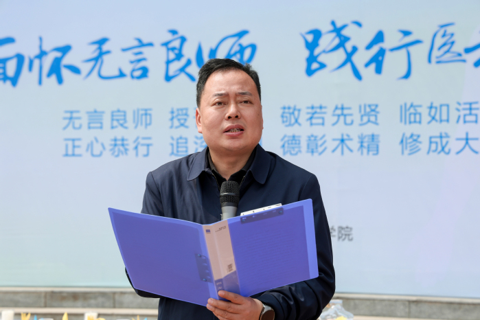 活动于12时30分在操场正式启幕,整合后的课堂致敬与课外践行环节同步有序开展,既凸显医学专业特色,又传递真挚的生命敬意。首先,学校副院长白国强致辞,深刻阐释“植物—实验动物—大体老师”生命共同体的核心内涵,寄语学子以敬畏之心对待每一个生命,以严谨之风钻研医学技艺,以仁心之举践行医者使命。随后,解剖学、机能学教研室教师依次发言,结合自身教学经历,生动讲述大体老师的无私奉献故事与实验动物的无声牺牲历程,详细解读遗体捐献流程、实验动物伦理规范,结合医学专业特色,将实验动物的生命价值、大体老师的育人意义与临床学习紧密结合,引导学子深刻感悟生命的脆弱与坚韧,懂得每一次医学实践背后的生命馈赠。最后,学生代表发言,结合自身即将开启的系统解剖学学习,畅谈对生命共同体的理解,表态将以敬畏之心对待专业学习,以感恩之心传承生命精神。