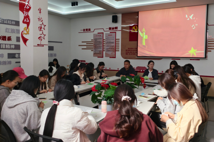 为引导师生党员在传统文化体验中寄托哀思、砥砺初心,4月1日,书院党建活动室开展了“手作寄哀思 匠心祭忠魂”纸花制作活动。师生党员代表齐聚一堂,大家认真折叠、细心裁剪、精心组装,将一张张素净的纸张化作一朵朵饱含敬意的纸花。活动现场气氛庄重而温馨,大家还在祈福卡上提笔书写对革命先烈的深切追思与崇高敬意。此次活动将传统手工艺与红色教育有机融合,让参与者在沉浸式体验中感悟中华优秀传统文化的深厚底蕴,以匠心之作寄托哀思,在指尖传承中厚植家国情怀。